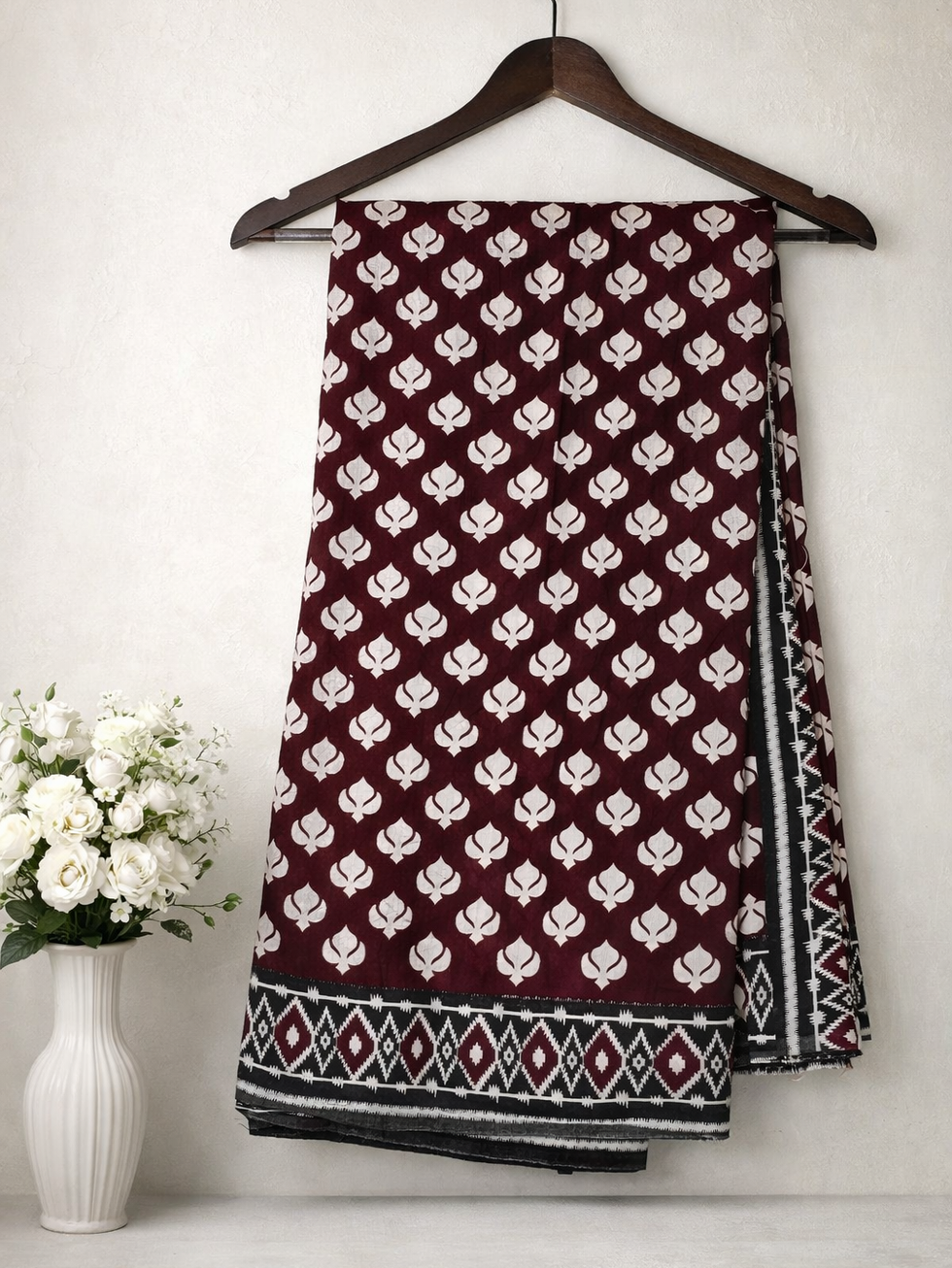 Design: All over classic maroon body with white motifs